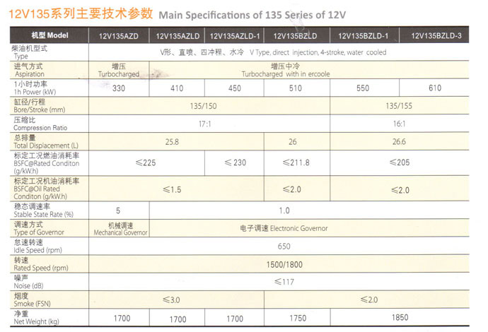 產品名稱:12V135系列電站用柴油機